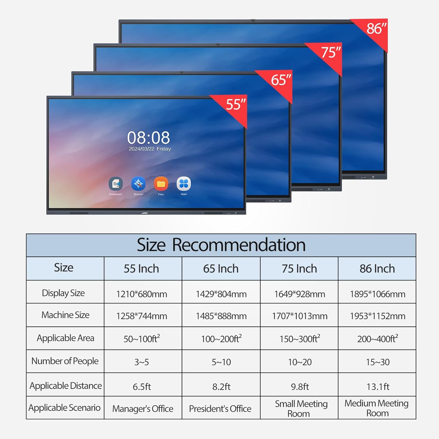 JAV Smart Board 55″ Smartboard Interactive Whiteboard for Office, Digital Interactive White Board Electronic Smartboards for Classroom (Wall Mount Included)