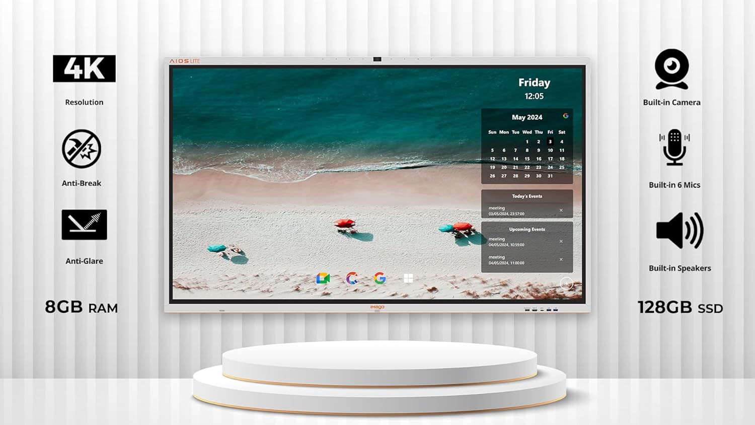 IMAGO AIOS Lite 55″ Interactive Smart Board, Digital AI whiteboard for Classroom and Office, Built-in Camera, Google ChromeOS Flex, Microphones (Free 3-Year Online Whiteboard Software)