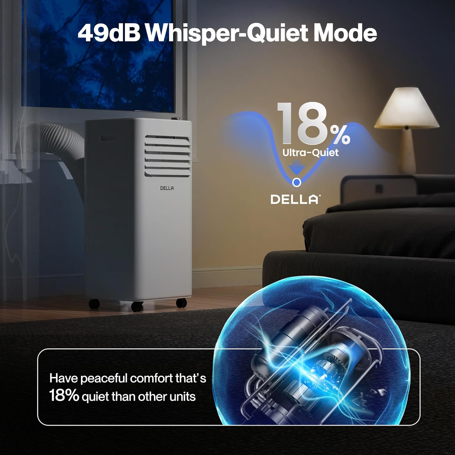 DELLA 8,000 BTU Cools Up To 150 Sq. Ft, Portable Air Conditioner with Heat Pump, Smart WiFi Enabled, Work with Alexa,Geo Fencing, Dehumidifier & Fan Portable AC Unit with Remote Control & Window Kit