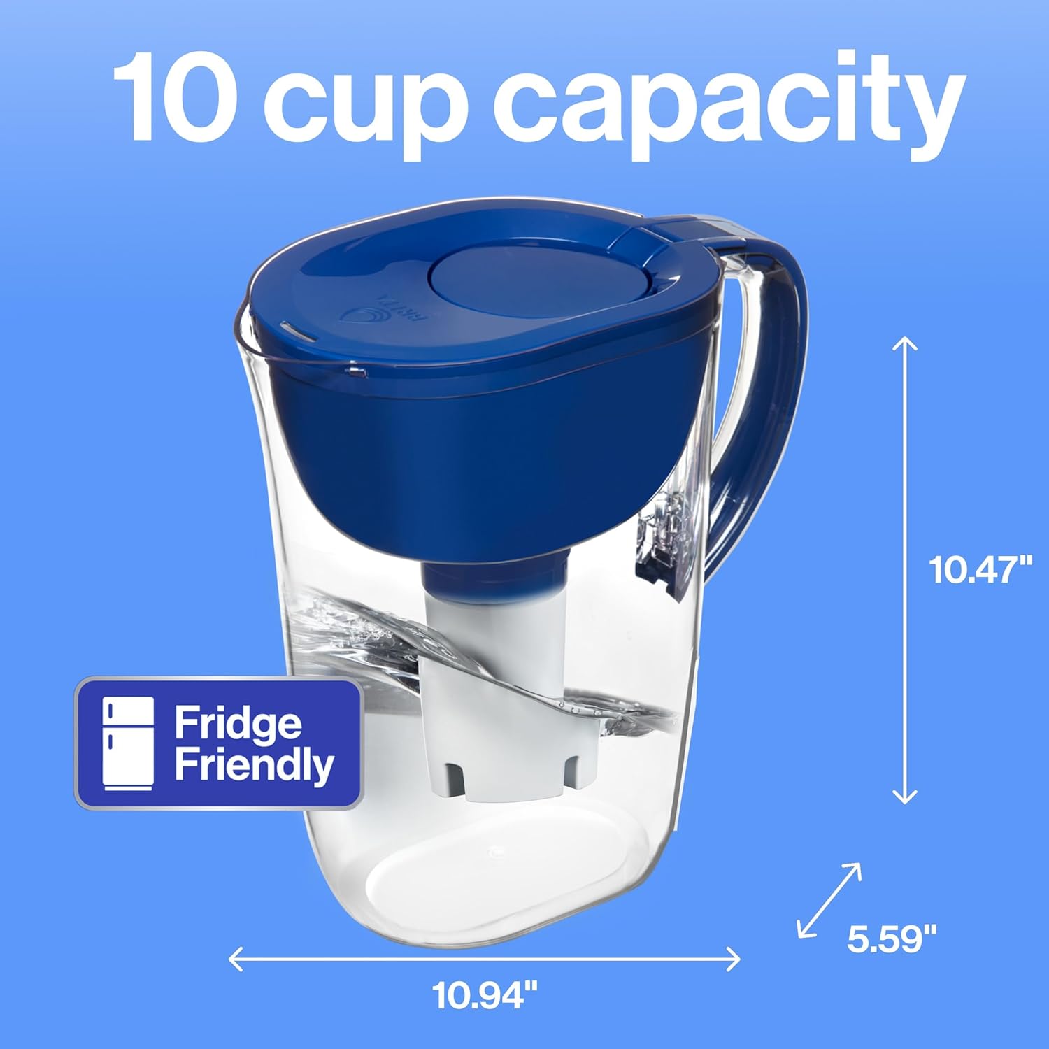 Brita Large Water Filter Pitcher for Tap and Drinking Water with SmartLight Change Indicator, Includes 1 Standard Filter, BPA-Free, Lasts 2 Months, 10-Cup Capacity, Mazarine Blue