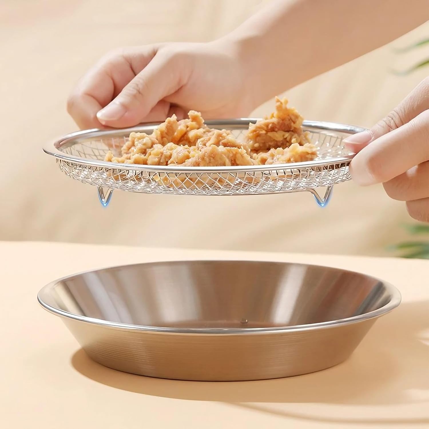 Air Fryer Rack Round Stainless Steel Basket, Oil Strainer Basket, Round Stackable Grill, Deep Fryer Basket for Air Fryer Accessories in the Kitchen (Gold) (Silver)