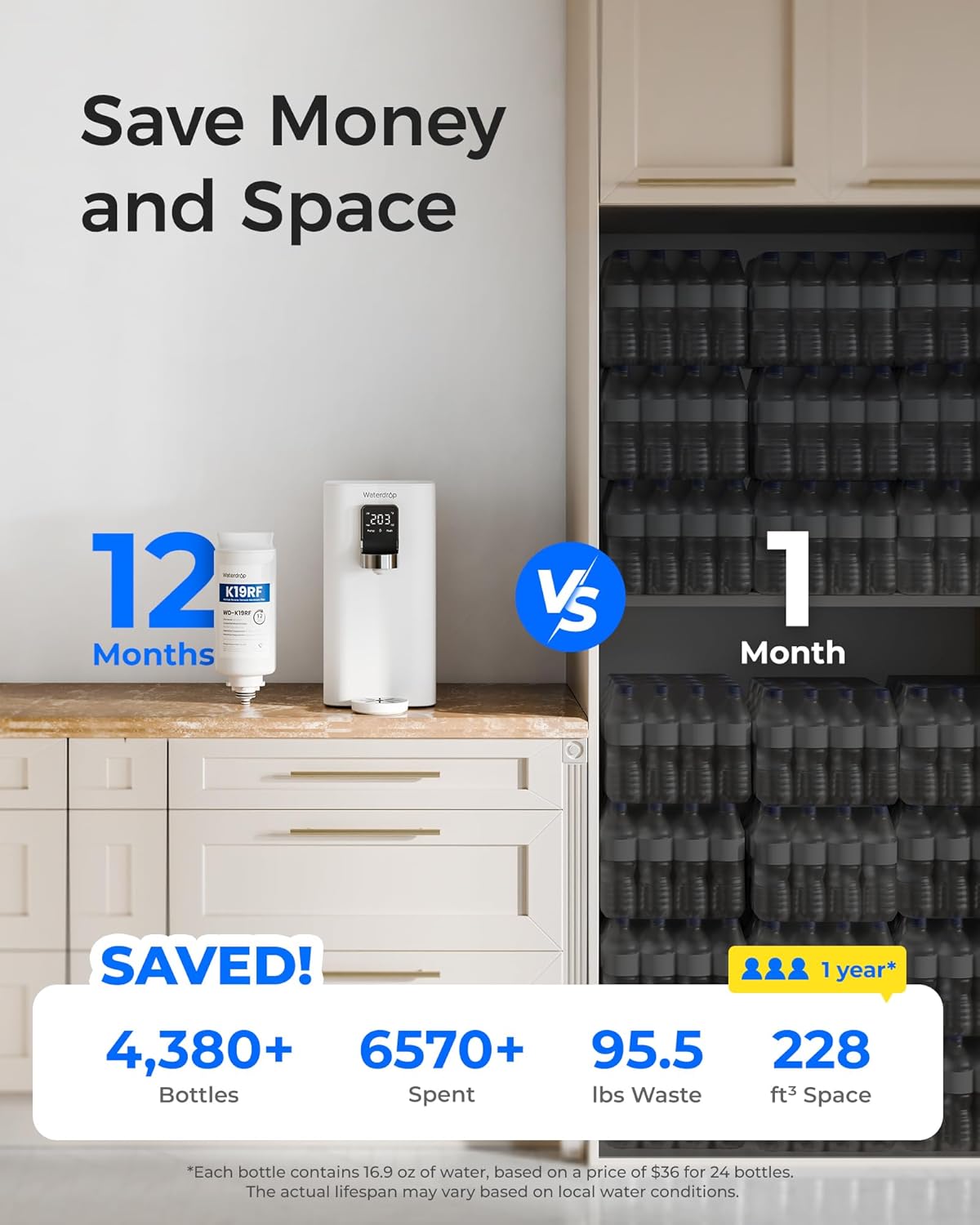 【Instant Hot】 Waterdrop K19-H Countertop Reverse Osmosis System, Reverse Osmosis Water Filter Countertop, 3:1 Pure to Drain, 4 Temperature Options Water Dispenser, No Installation