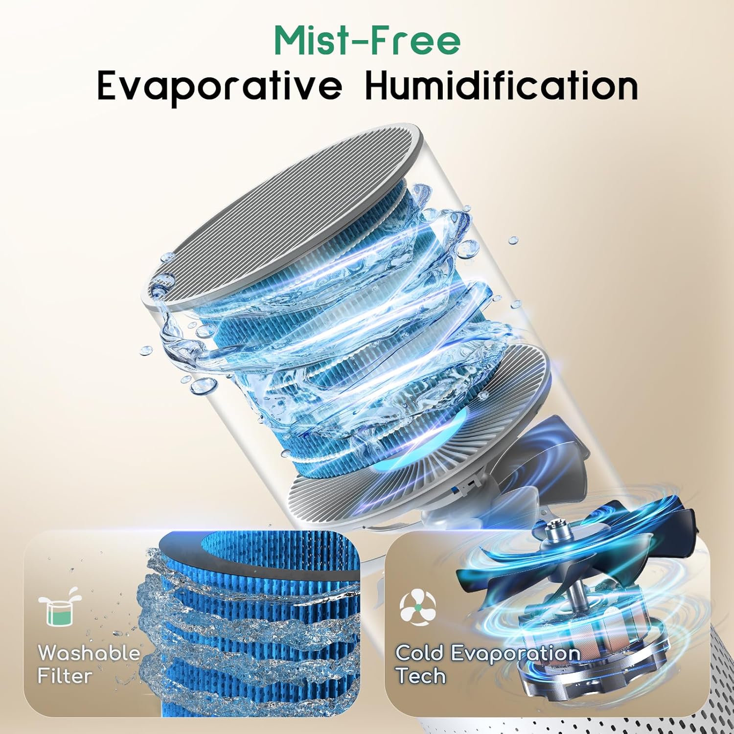 Afloia Humidifier and Air Purifier in One, Air Purifier and Evaporative Humidifier Combo for Home, 24dB Quiet Air Cleaner Remove Pets Dust Dander Hair Allergy Pollen Smoke Smell for Room