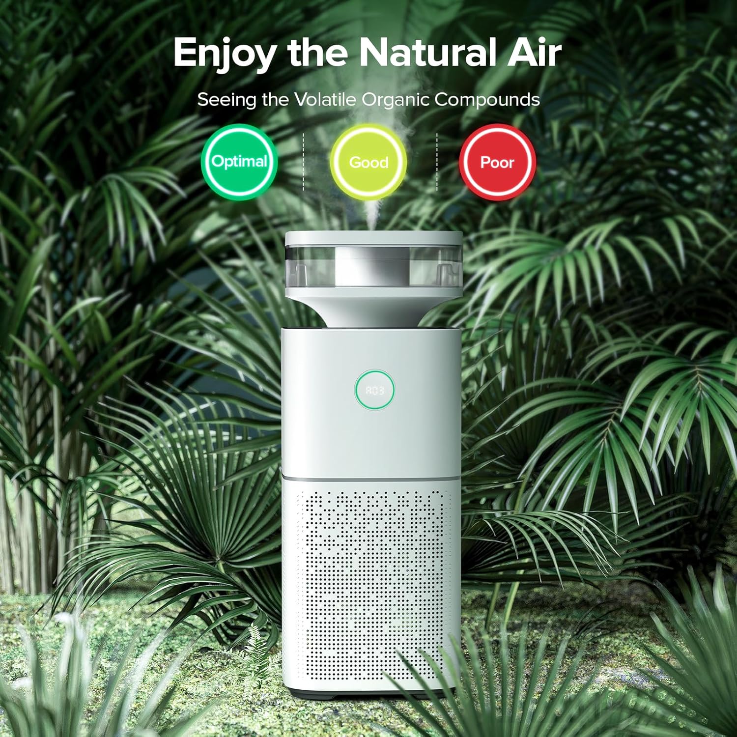 Advanced Sensors, Precise Control: This smart air purifier humidifier is equipped with a VOC sensor and humidity sensor, it monitors air quality in real-time and displays results via a three-color indicator. The humidity sensor automatically adjusts moisture levels, ensuring optimal indoor humidity for a healthier and more comfortable living environment.