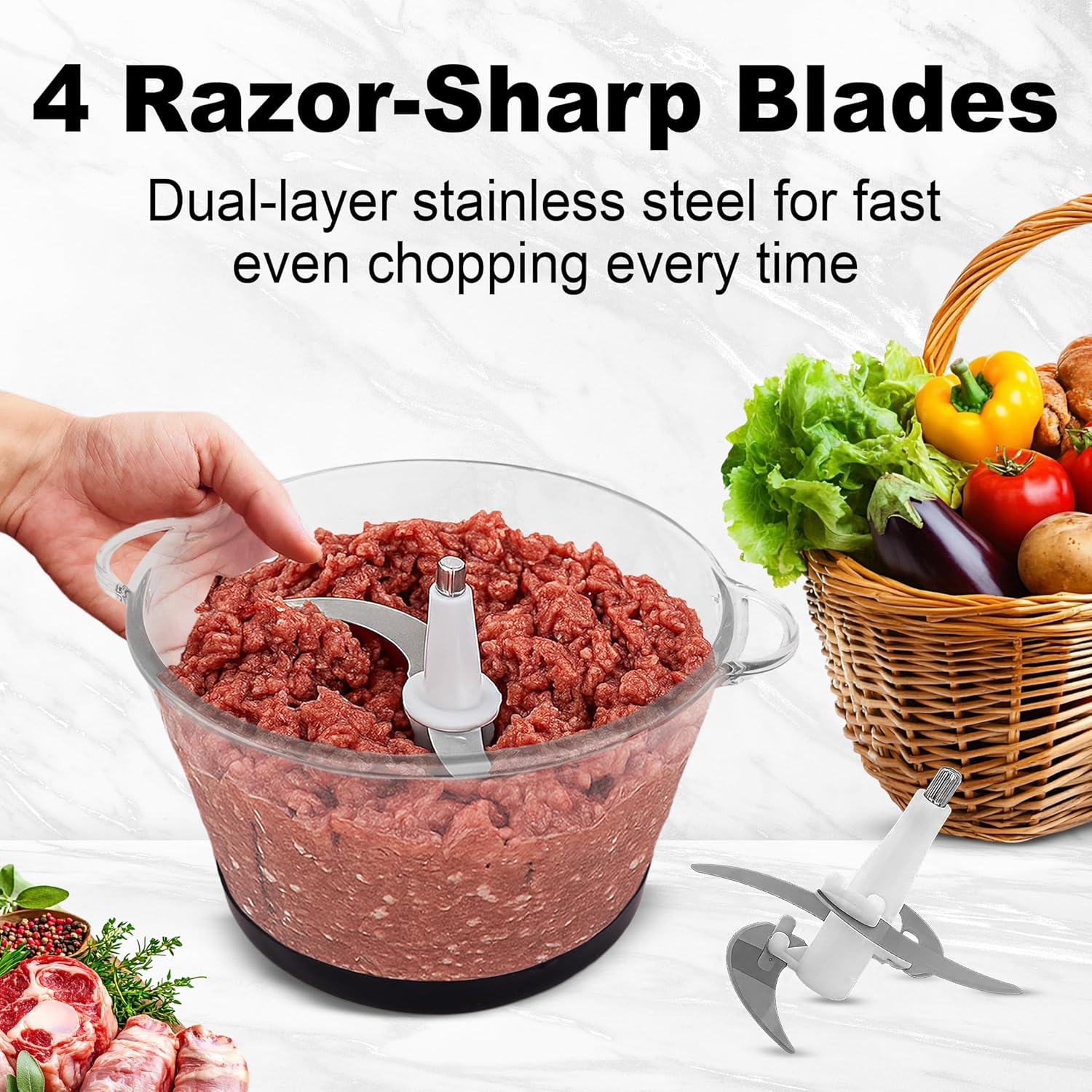 🔪 4 Sharp Stainless Steel Blades – Dual-layer blades provide smooth and uniform chopping, mincing, and mixing with minimal effort.