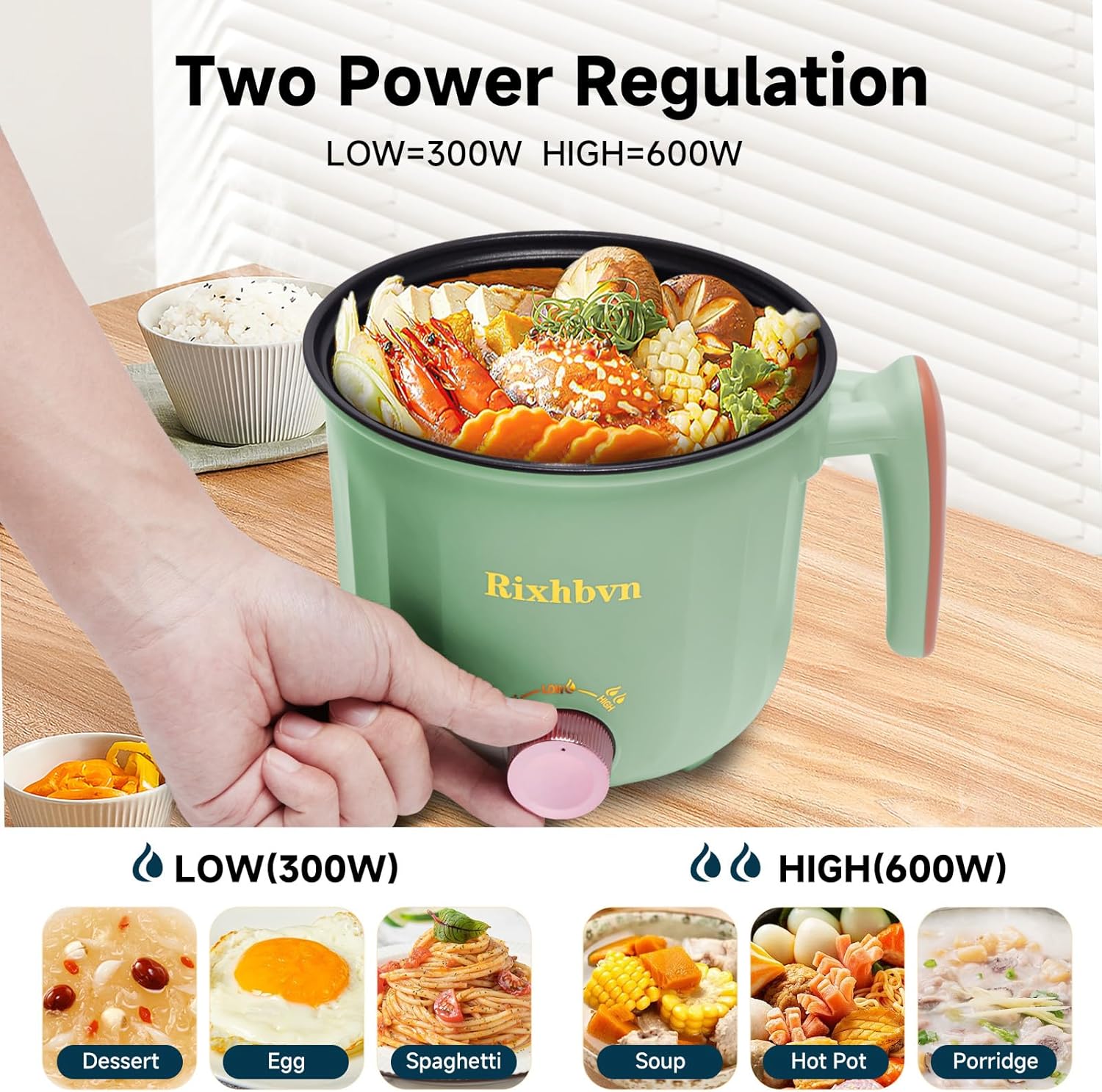 Multifunctional electric hot pot:This electric mini pot can be used in the upper and lower layers of the steamer. It is very suitable for stewing soup, cooking Pasta,dumplings, noodles, soup, porridge, eggs, oatmeal and other delicious various foods, providing you with a variety of choices for preparing daily meals. The pot can also be used for frying, steak, chicken, fried rice, noodles, eggs,etc. To meet all your expectations of deliciousness.