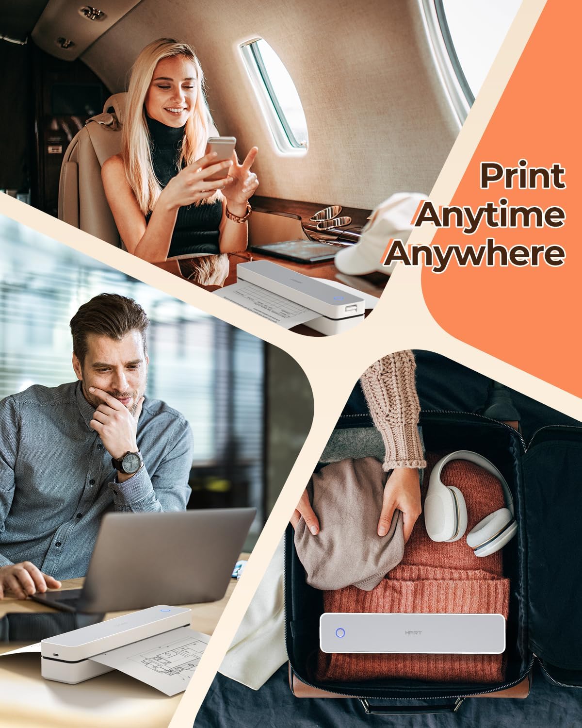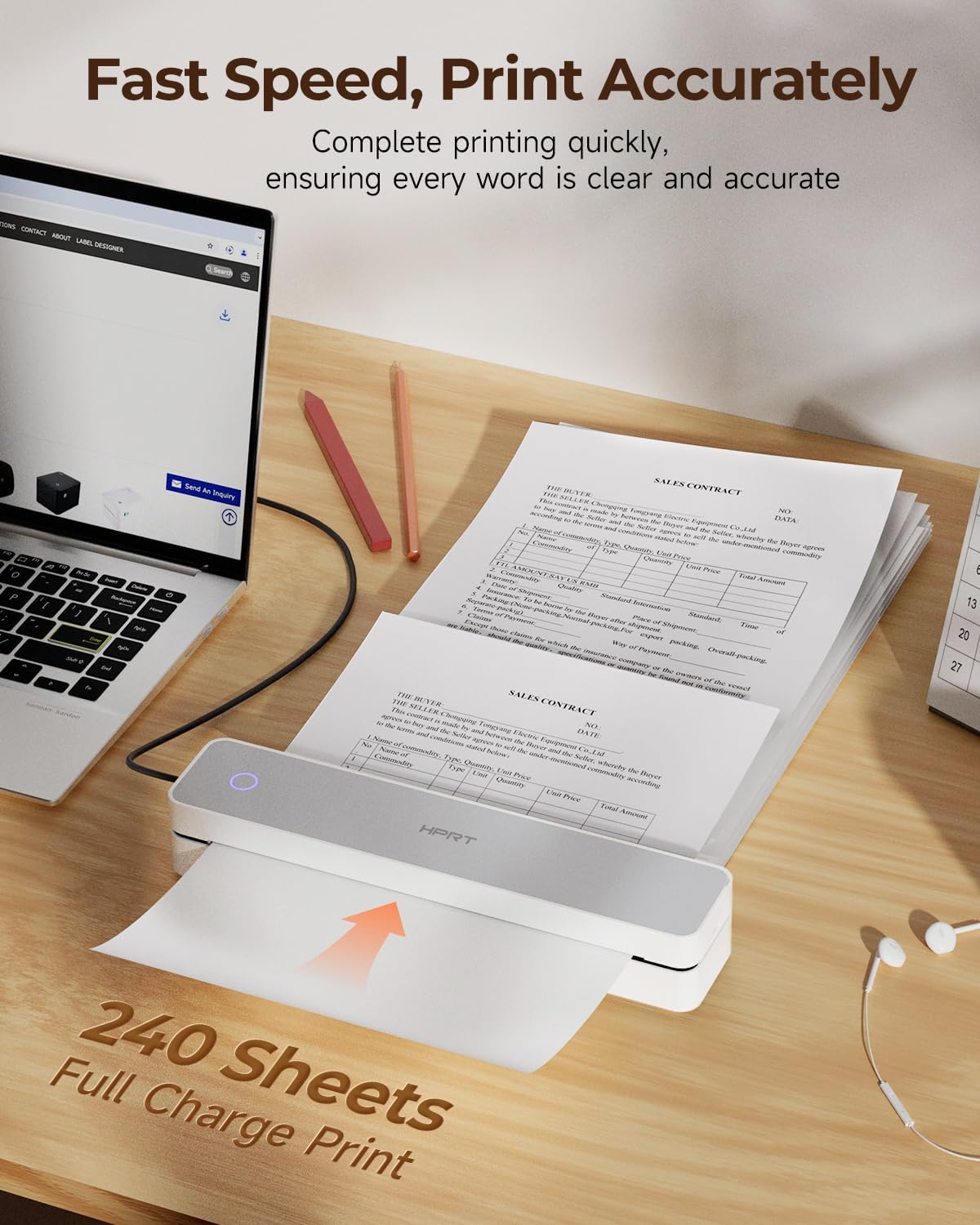 HPRT Portable Thermal Printer for Travel, Inkless Printer Support 8.5″ X 11″ US Letter & A4 A5, Bluetooth Wireless Printer Compatible with iOS, Android, Laptop for Car, Office, Outdoor, School, White