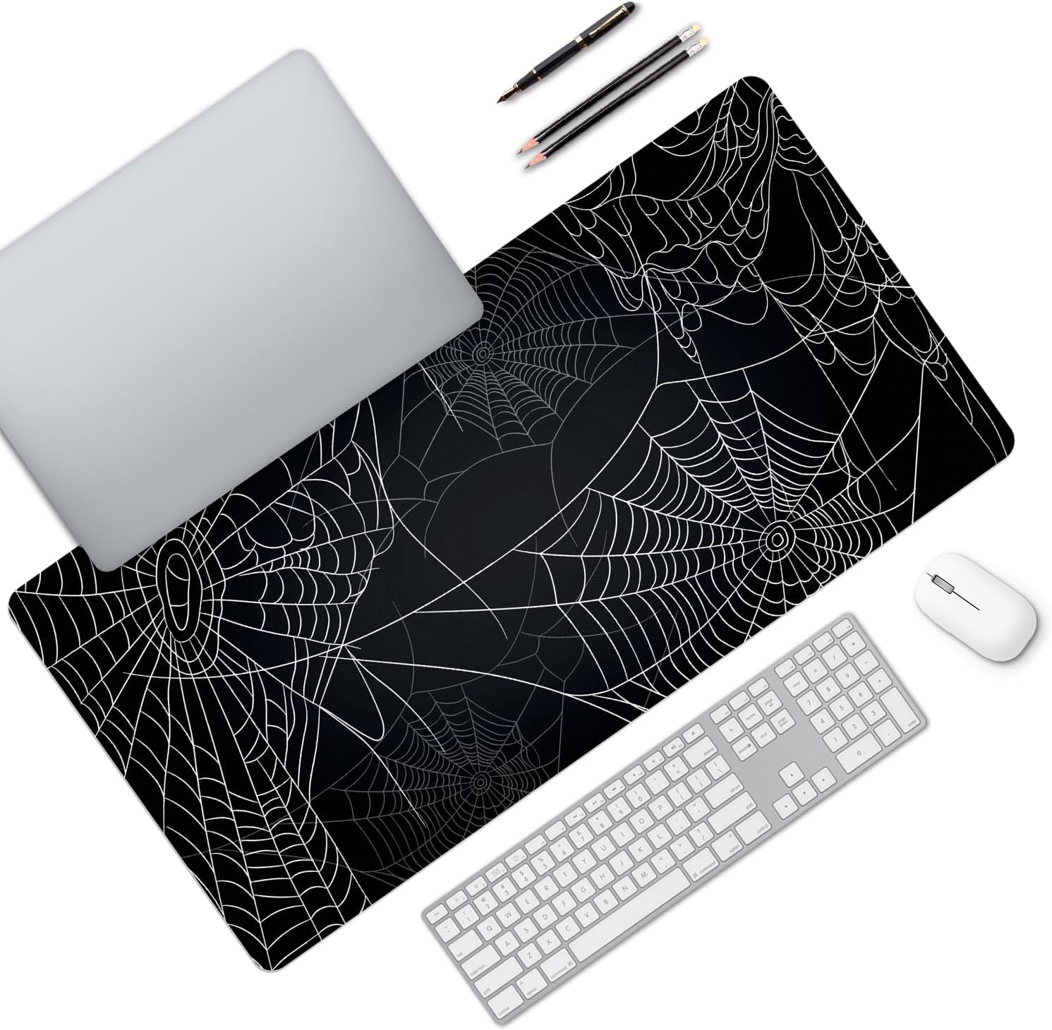 MAYCARI Halloween Cute Spider Webs Mouse Pad Kawaii Cartoon Funny Spirit Extended Desk Mat Non-Slip Rubber Baseb Large Black White Mousepad for Desk Gaming Laptop Desktop 31.5″X15.7″