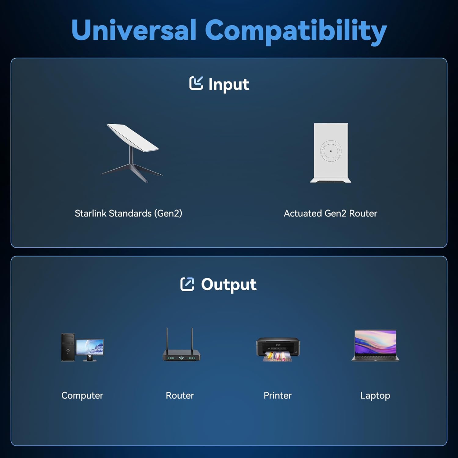 Plug-Play-Prosper: Be operational in 18 seconds flat – no IT degree required. Featuring gold-plated corrosion-resistant ports and strain relief joints, rigorously tested through 50,000+ insertion cycles. Your Starlink accessories should work as hard as you do.