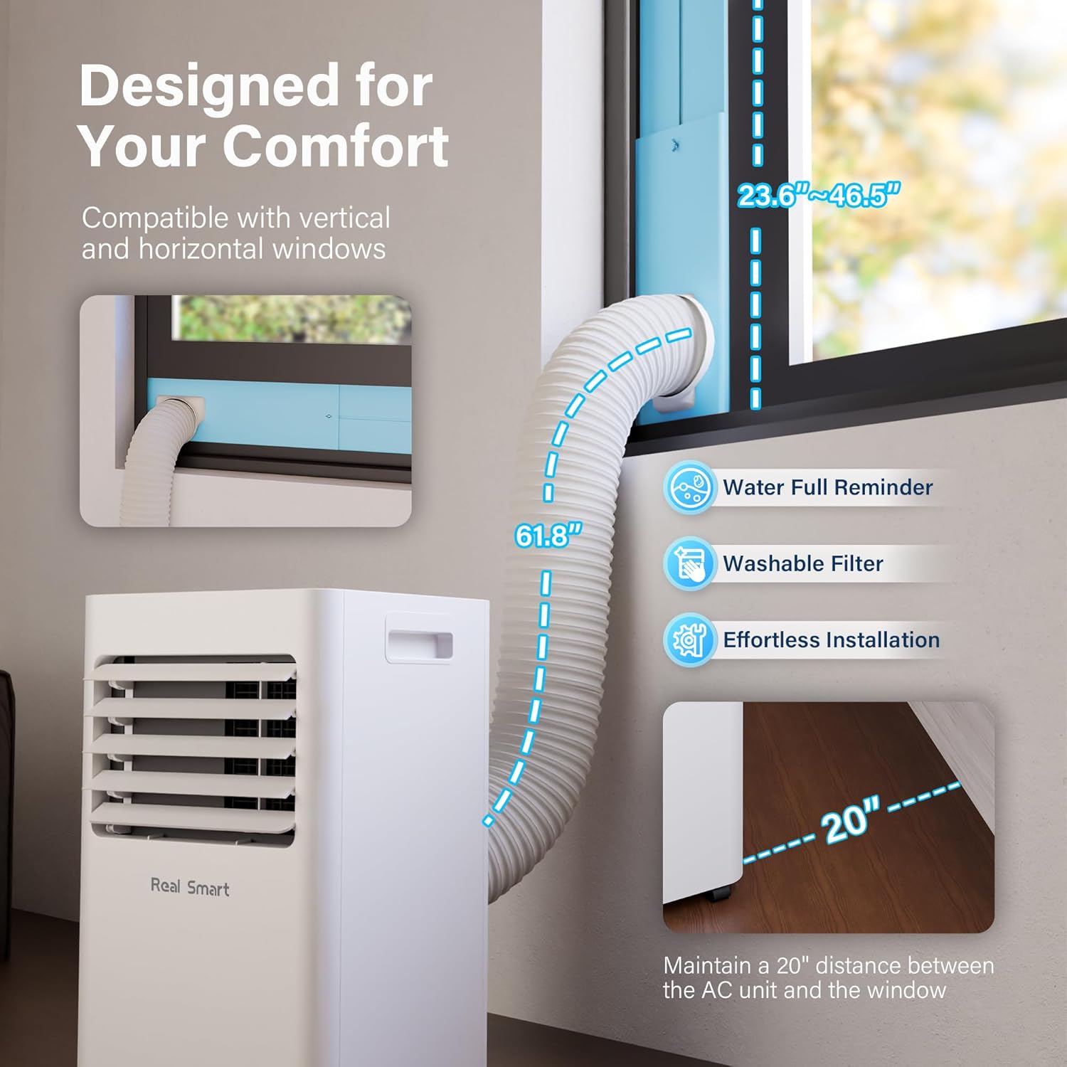 Extremely Fast Cooling: 8000 BTU ASHARE/4600 BTU SACC portable air conditioner delivers fast, even cooling for spaces up to 375 sq.ft.Its energy-efficient compressor reduces room temperature within minutes, offering instant relief during heat waves. Perfect for bedrooms, living rooms or offices