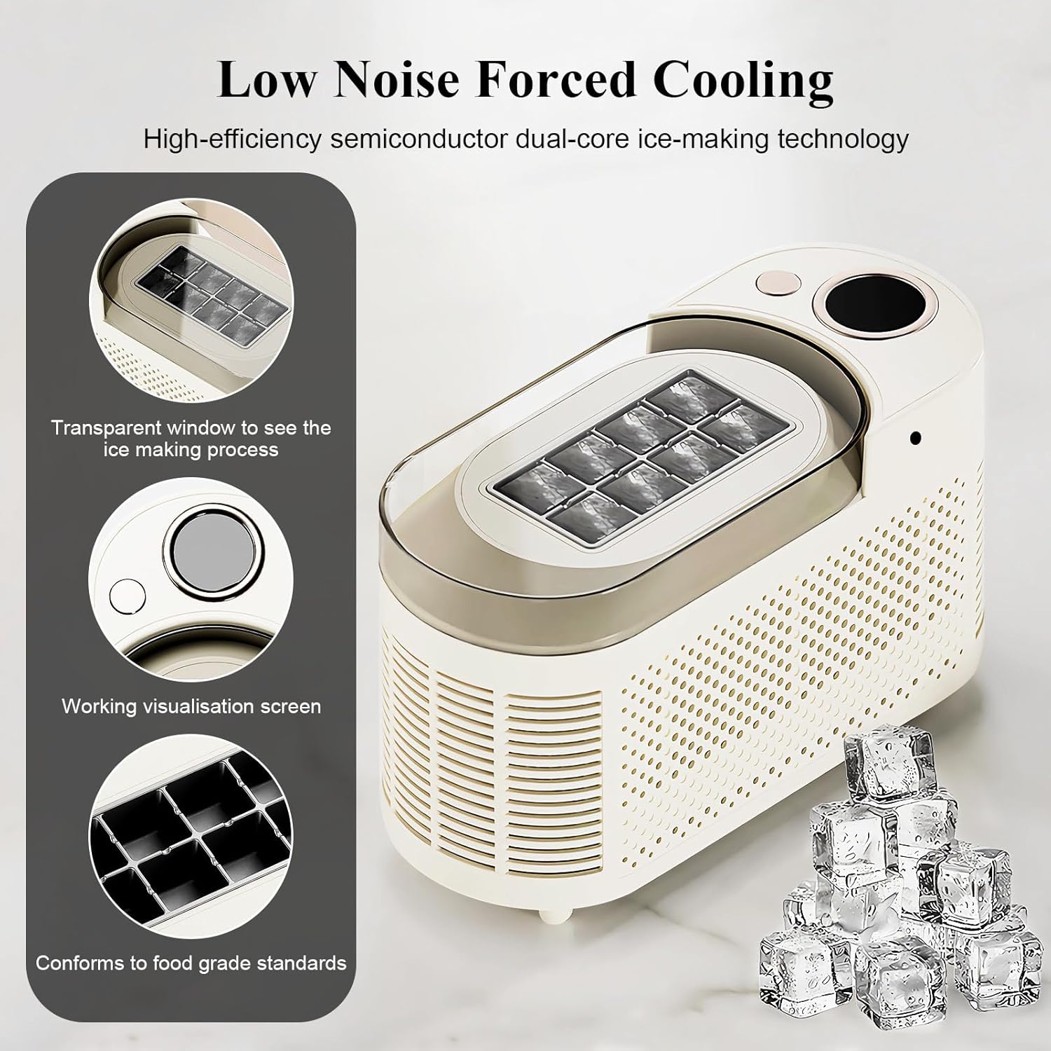 Effortless 4-Step Ice Making – Perfect for Busy Lifestyles!: Simply pour water, press start, wait 10-15 minutes, (Due to the ambient temperature, it may take longer to make ice cubes) Outdoor use may take longer, and lift the for fresh ice. The stainless steel cooling system ensures durability, while the sleek design complements modern kitchens. Great for parties, picnics, or daily use.