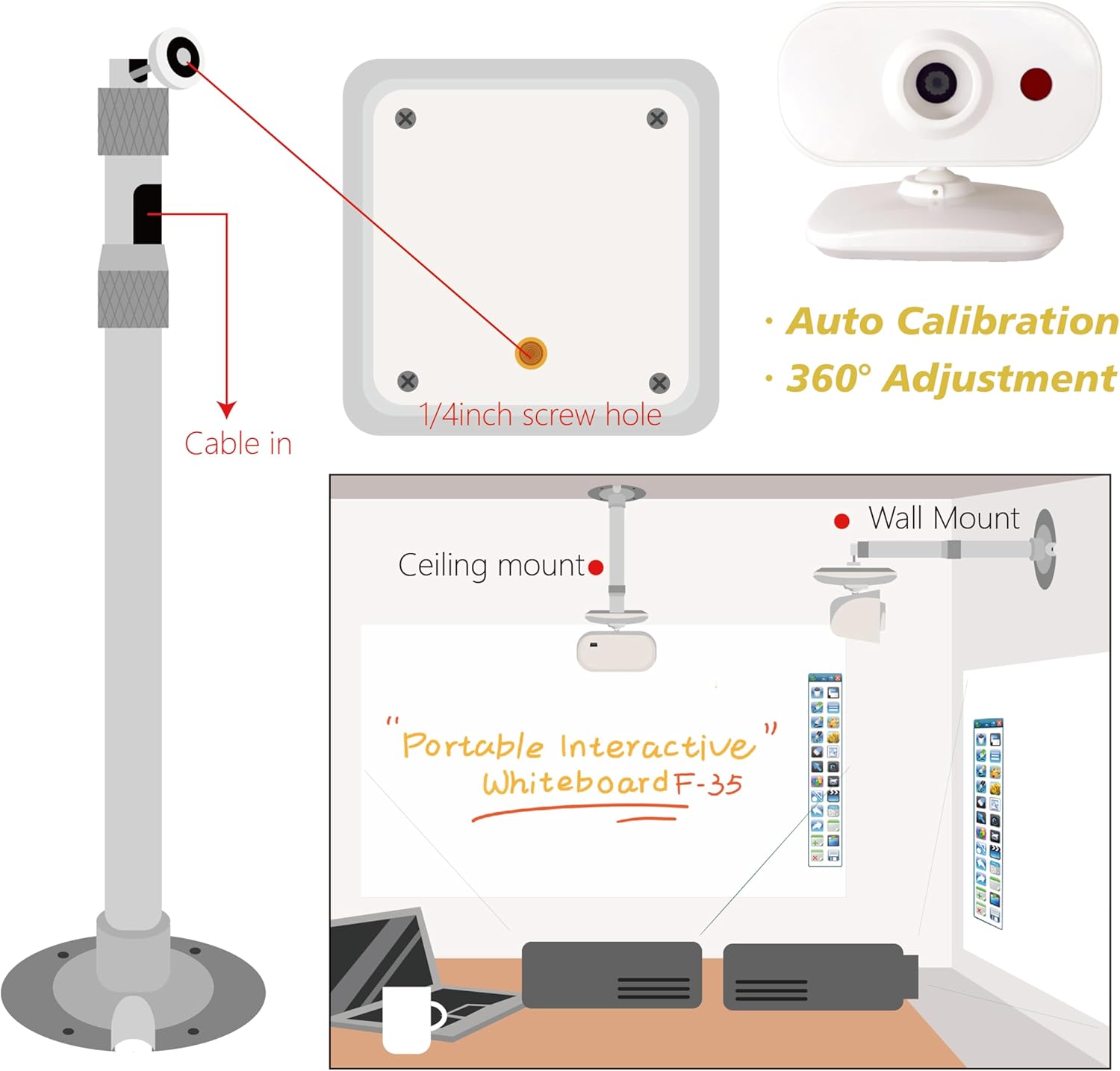 [Flexible Adjustment & Auto Calibration] The digital whiteboard features a 360-degree adjustable design, allowing for flexible adjustment to adapt to different angles. It also includes an automatic calibration function, which is fast and easy to use, eliminating the need for manual calibration.