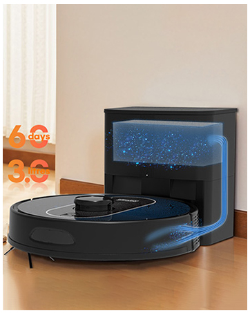 60 Days Hassle-Free Self-Emptying Station: Comes with a self-emptying base station equipped with a 3L dust bag capacity, offering you up to 60 days of hands-free cleaning. The ultra strong suction power base station can efficiently empty the dust and debris collected from the robot vacuum into the dust bag. Enjoy the hands-free cleaning, enjoy your free time.