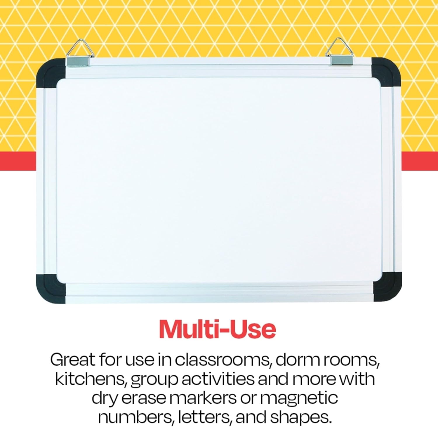 School Smart Magnetic Wipe-Off Dry Erase Board features a dual-purpose metal coated board with an aluminum frame. 8″ x 12″ Pupil board can be used with magnetic letters, numbers and shapes.