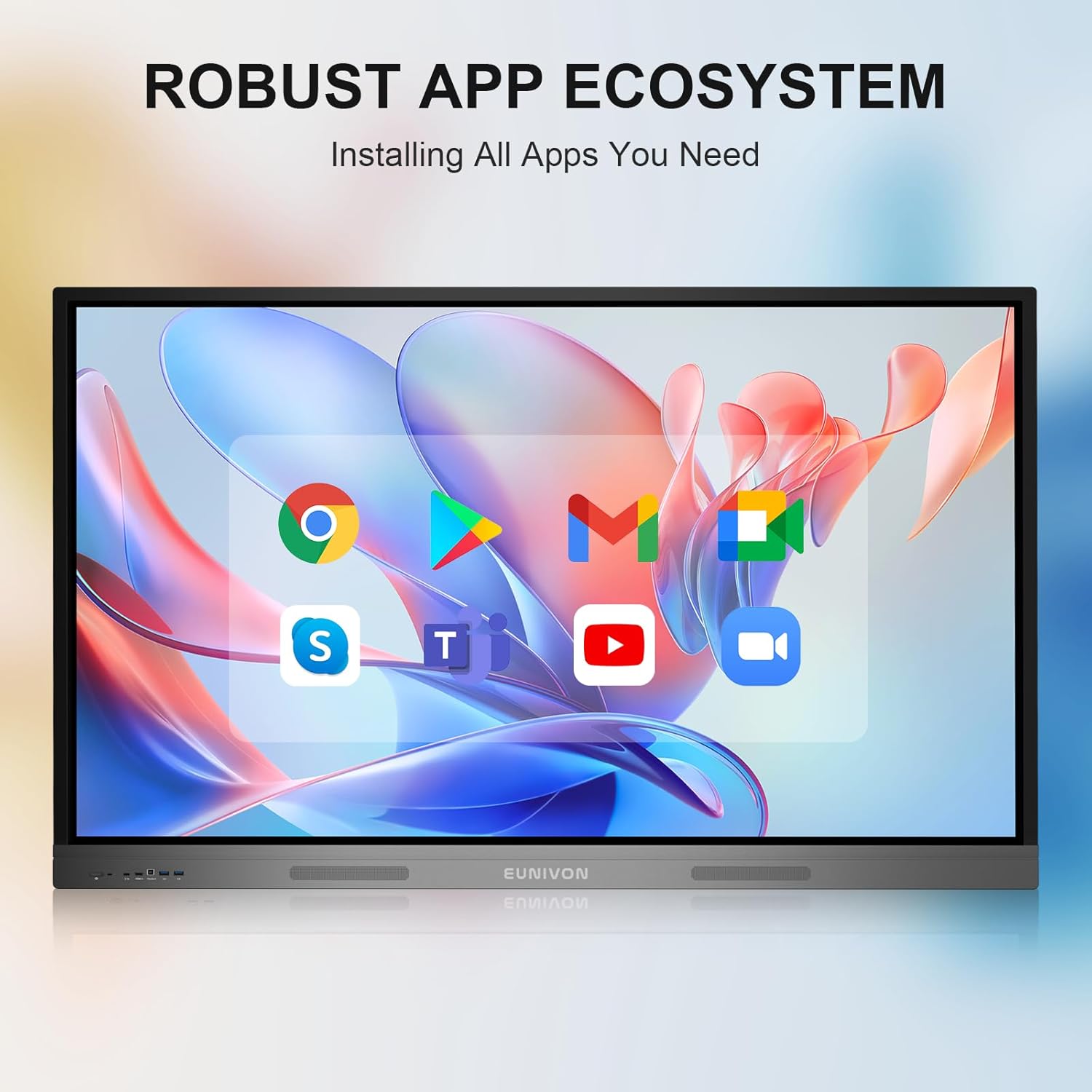 Robust App Ecosystem: EUNIVON interactive whiteboard open ecosystem allows you to choose whatever apps best for you and your organization. These interactive whiteboards can meet your multiple needs at work. The digital board can bring you a new education experience.