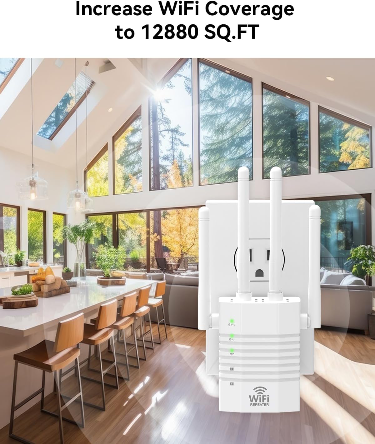 WiFi Extender Signal Booster, 1200Mbps Dual Band 2.4G&5.0G Signal WIFI Booster, WIFI Extender Covers Up to 12880 Sq.ft and 105 Devices, WIFI Repeater with High – Speed Network Extender for Home